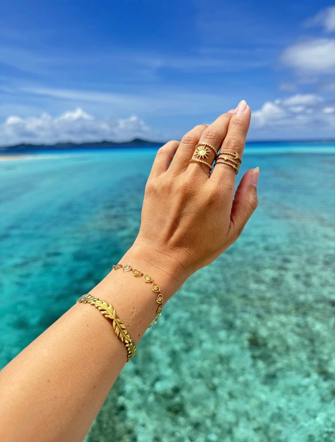 gypsy8から新しいアイテムのご紹介です 汗水に強く金属アレルギーが出にくい 海で着けても錆びにくい ステンレスアクセサリー アレルギーも水も気にせず着用OK 海が大好きでアレルギー持ちの アクセサリー作家がセレクトした アクセサリーです moon&starパブェブレスレット gypsy8で人気の月のモチーフのブレスレットです♡ 繊細で華奢なデザインは高級感があり ゴールドに映えるクリスタルが美しいブレスレットです 春のお洋服に合わせて着けるのが楽しみになる デザインです♡ 約17cm+5cmアジャスター