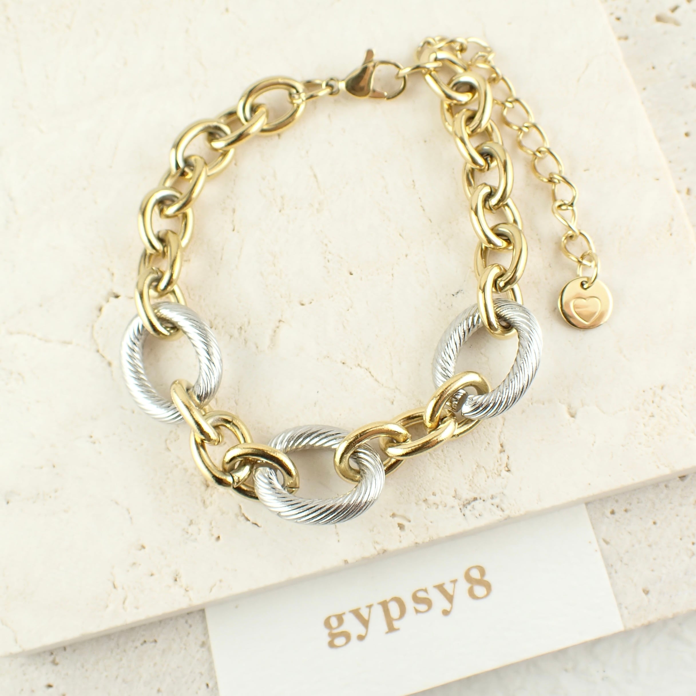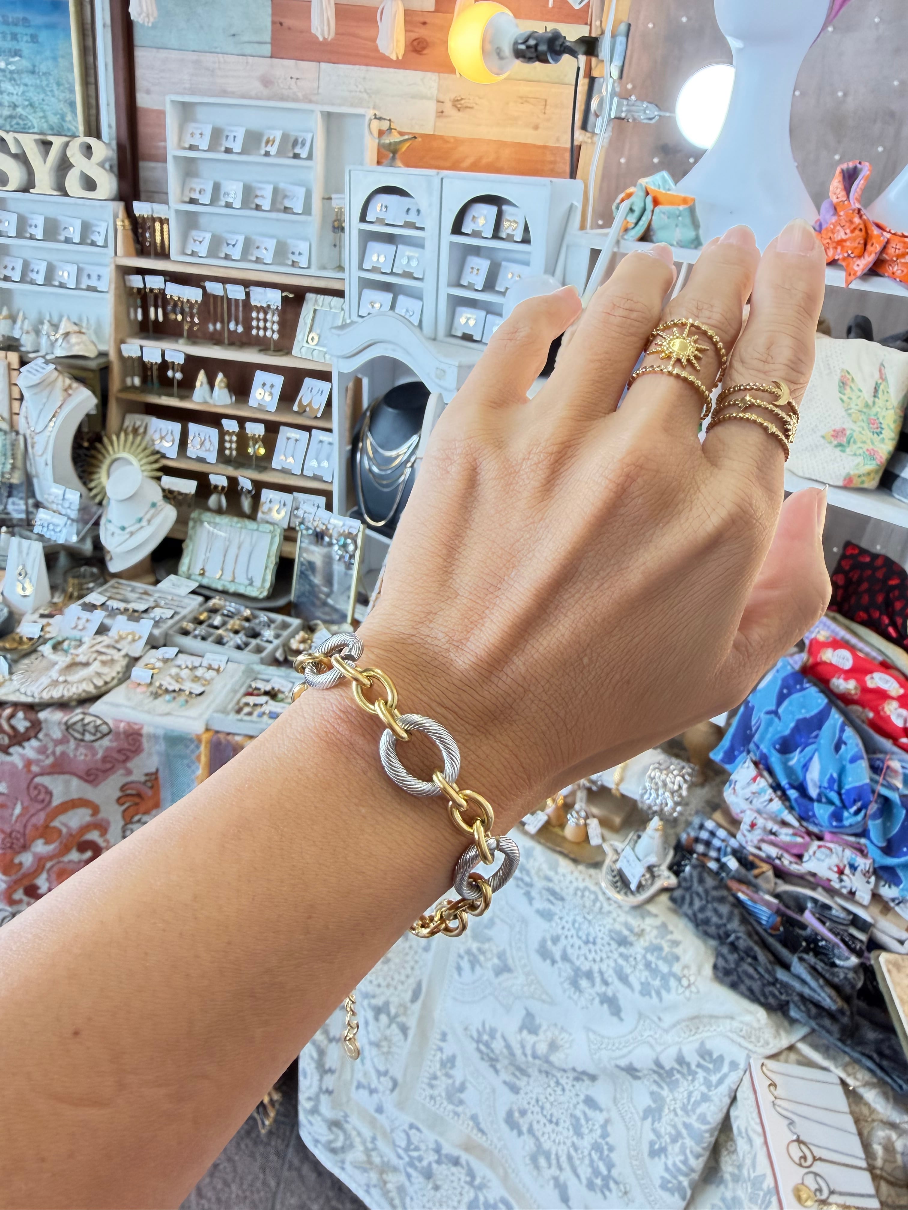3つのsilverオーバルとgoldチェーンの組み合わせ