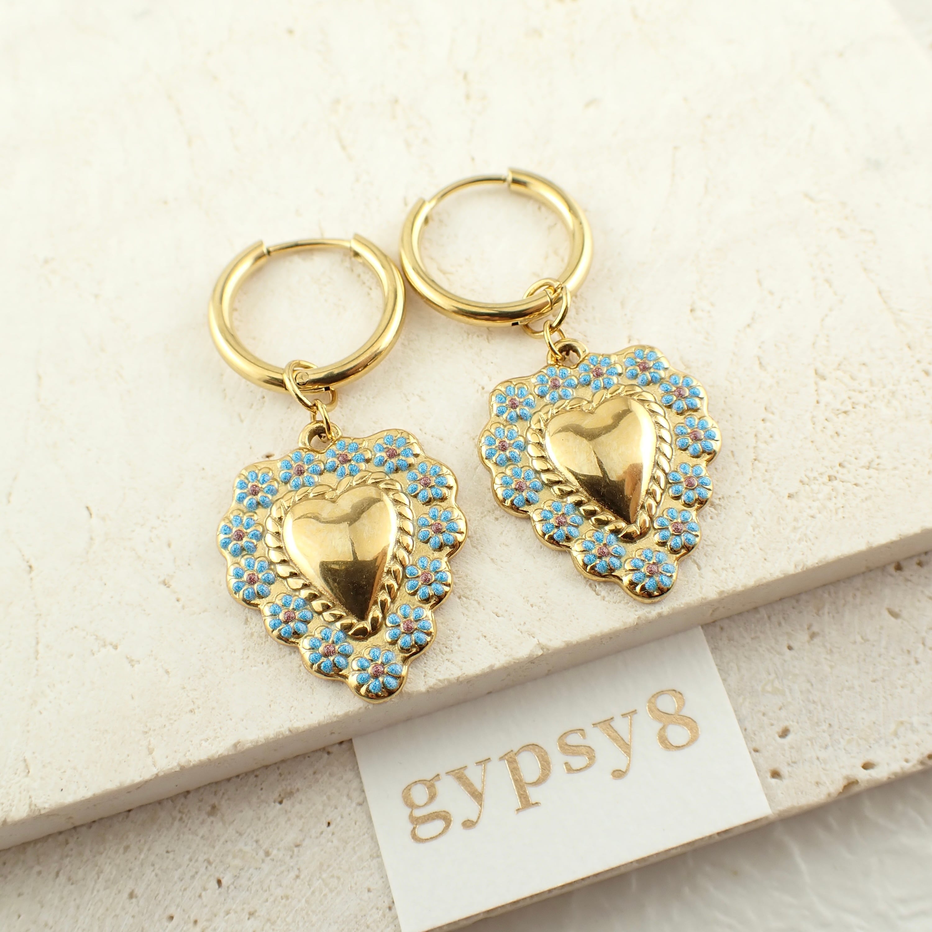 青いお花とハートの組み合わせ♡